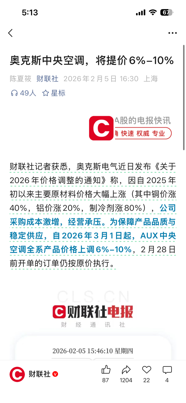 $美的集团(SZ000333)$ 有没有涨价预期?