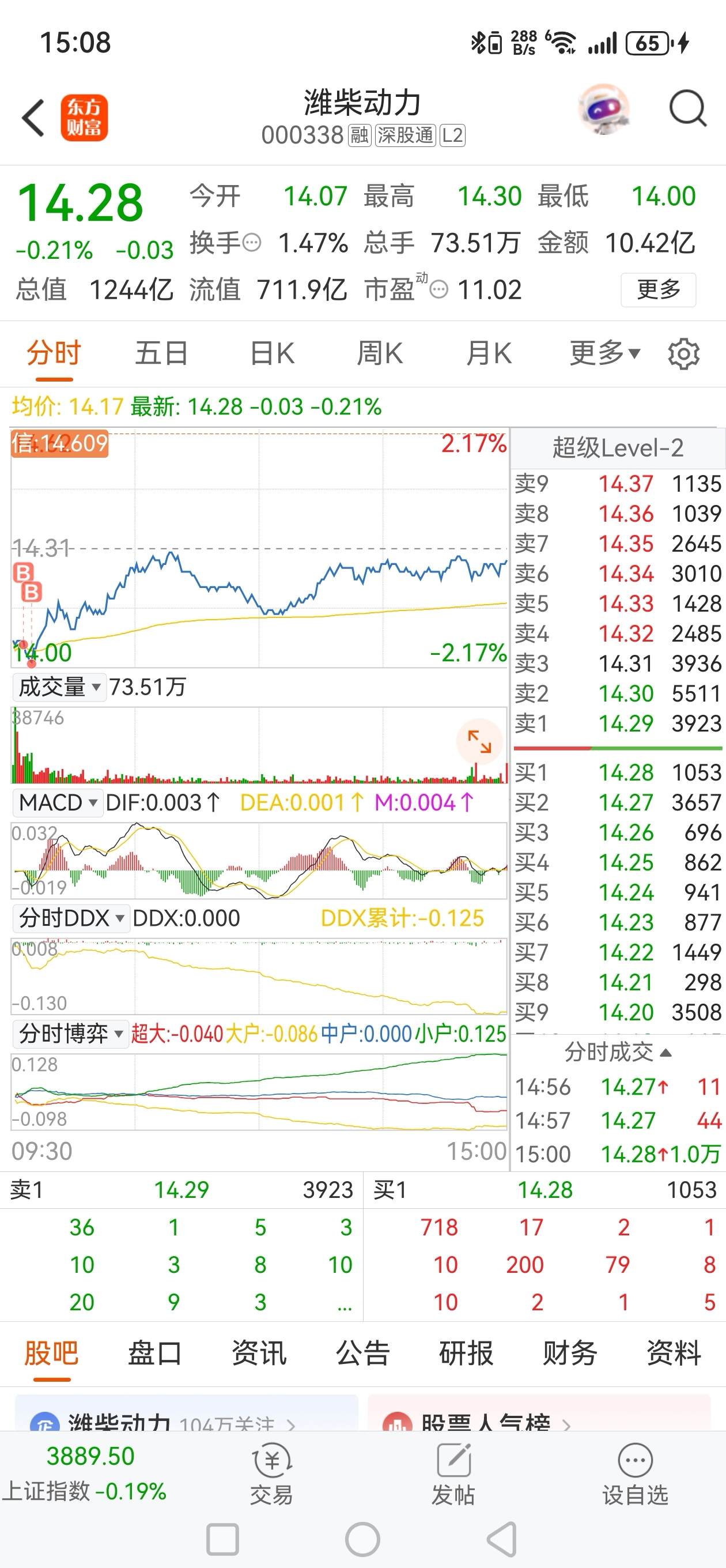 $潍柴动力(SZ000338)$ 明天是不是该涨点