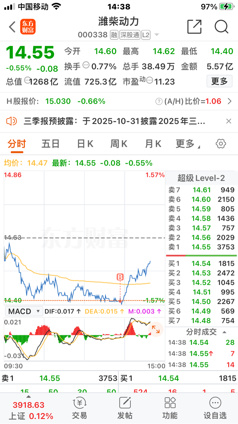 $潍柴动力(SZ000338)$ 刚好跟上吃明天的分红