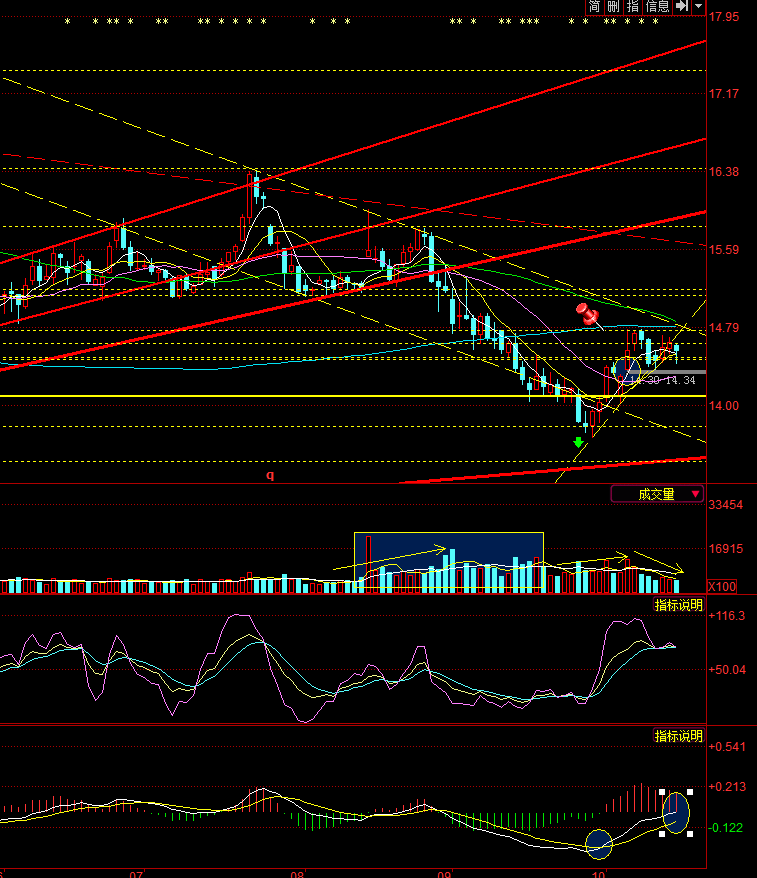 后面几天继续观察缺口位置,我依然看涨,看它挑战年线。 20251023,分红了,你今天是股东了吗?虽然今天下跌了但我到账将近——,明天保得住吗? 今天是跳空后的第八天,积极现象是缺口还没补,消极现象是后面6天又是旧病复发,量能萎缩,唯唯喏喏,踏步不前,致使股民们大失所望,连分红权利都不要了。