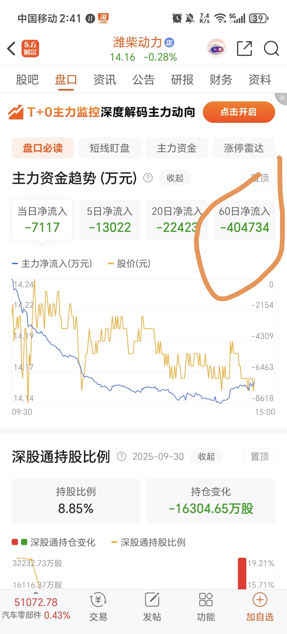 $潍柴动力(SZ000338)$ 没看错吧,60天流出去40亿资金??