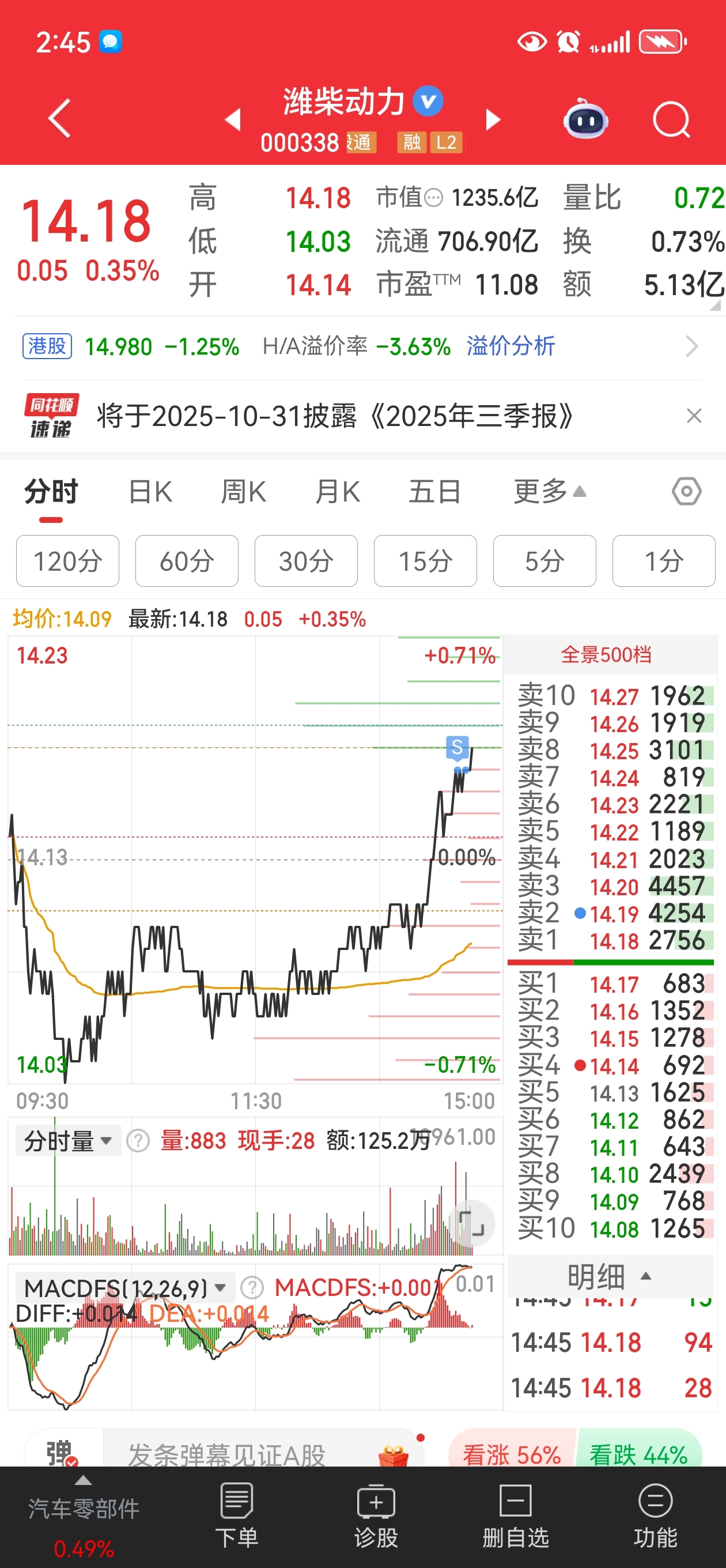 $潍柴动力(SZ000338)$ 拜了个拜。给你一半。