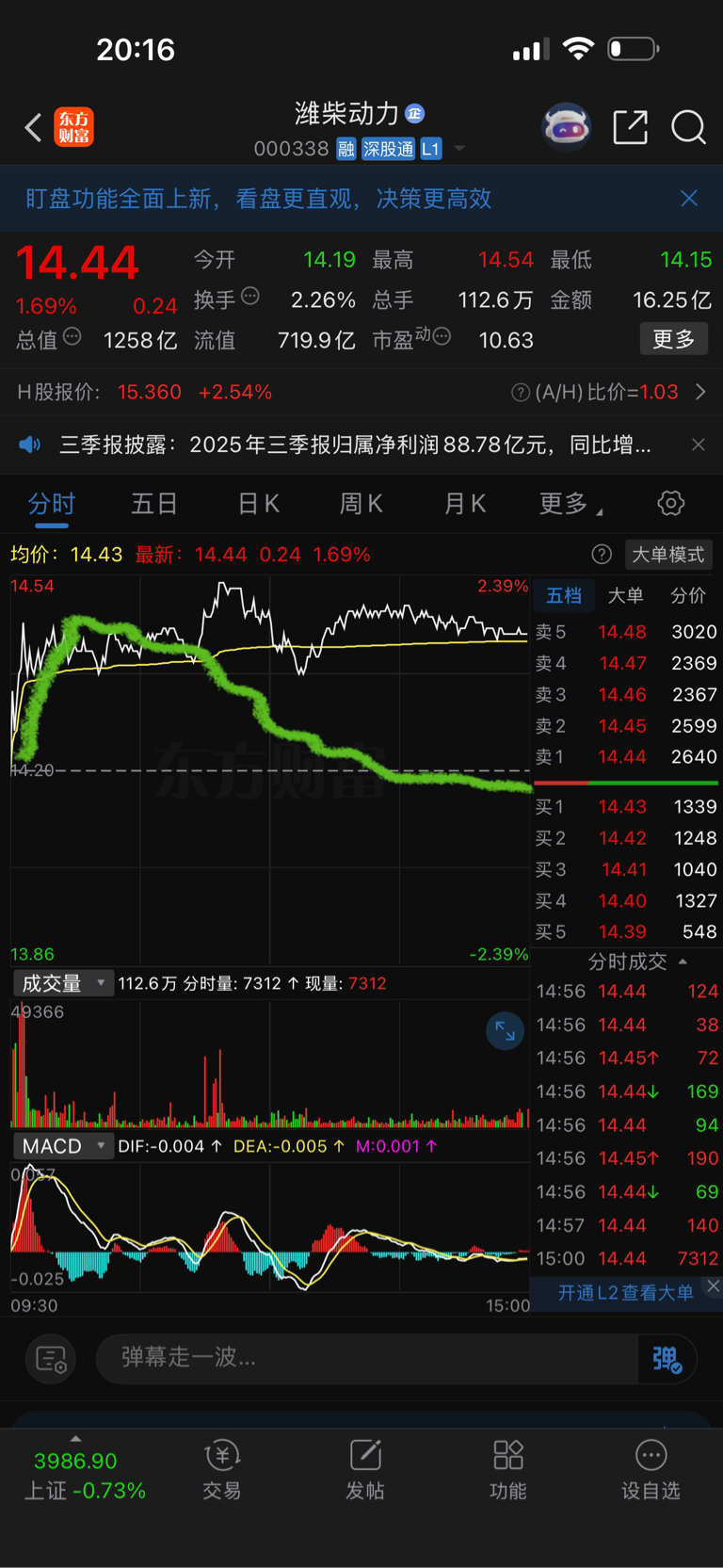 $潍柴动力(SZ000338)$ 提前判断明天的走势