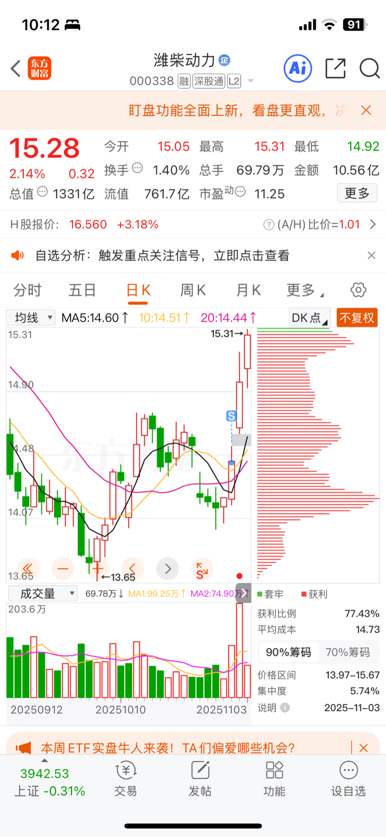 $潍柴动力(SZ000338)$ 哎,拍大腿啊