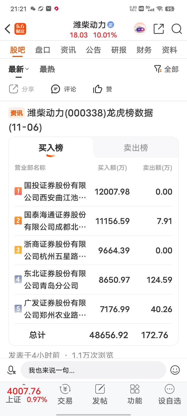 $潍柴动力(SZ000338)$