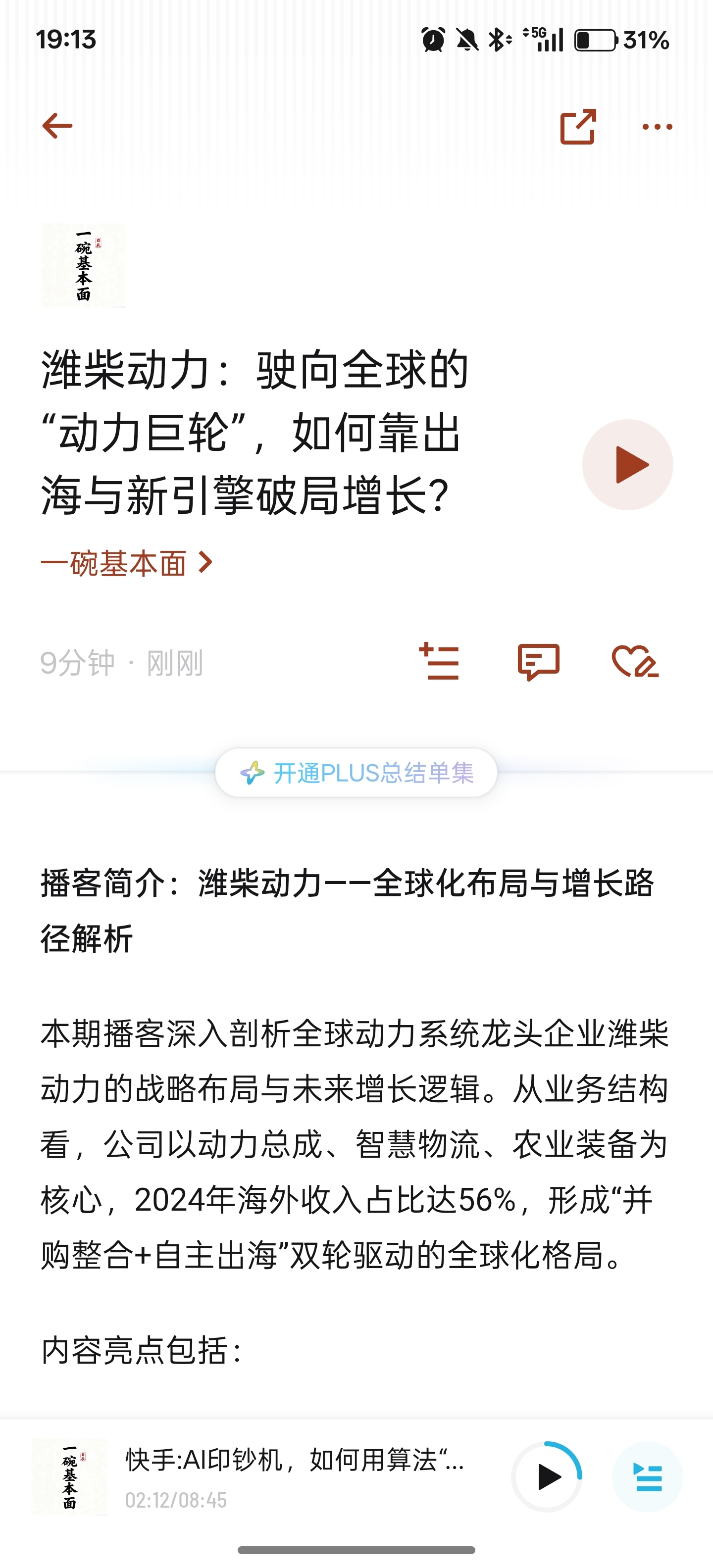 小宇宙app,主理人“一碗基本面”,11.5发的一篇关于潍柴动力”的播客挺好的,