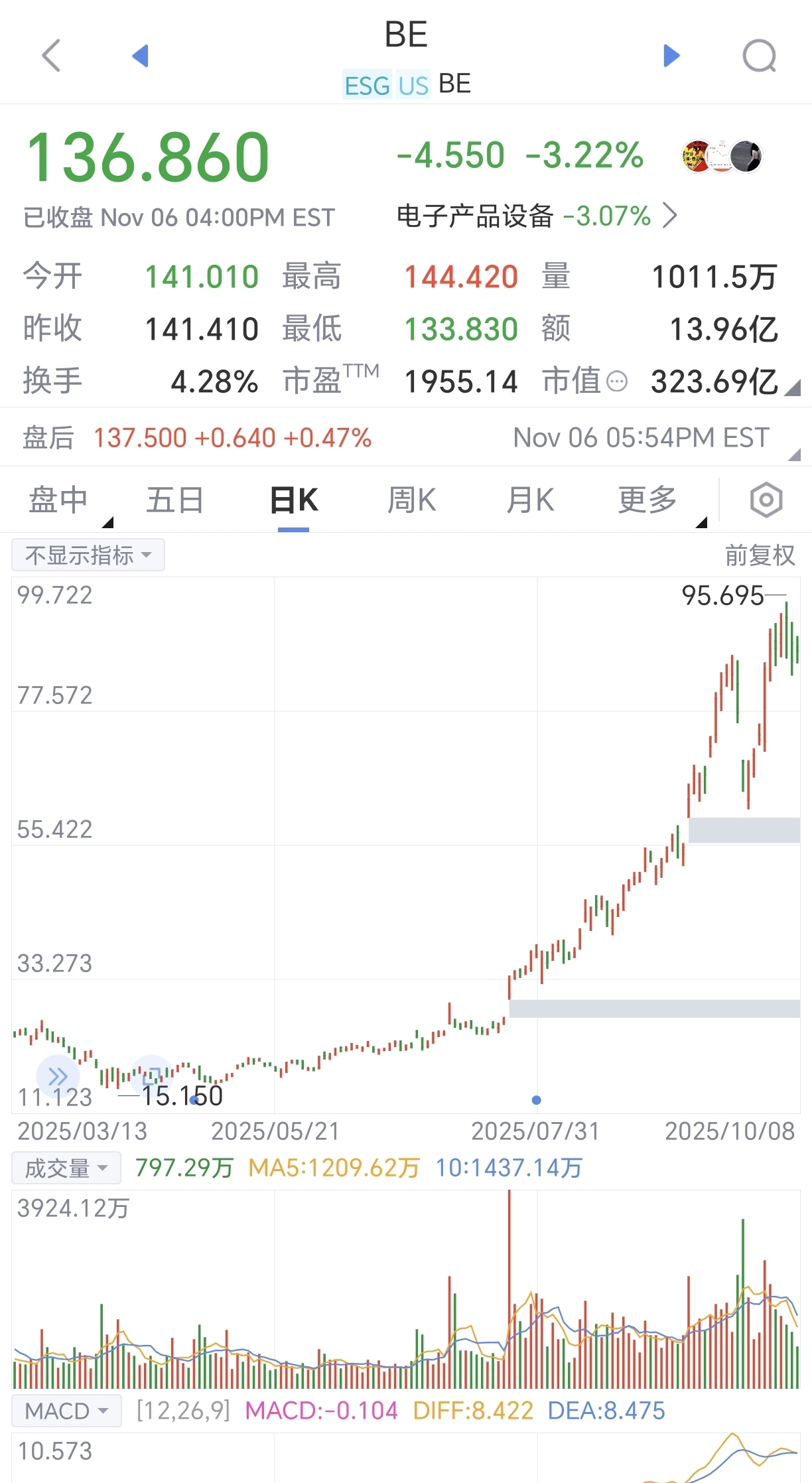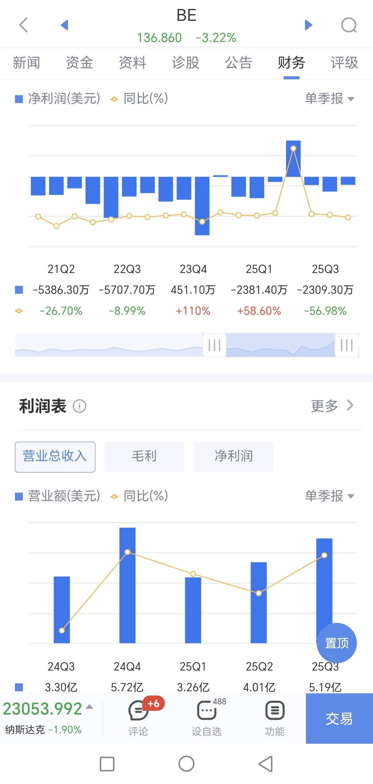 BE的营业收入、净利润也不过尔尔,美股市场给了1955倍的市盈率预期,看好其未来