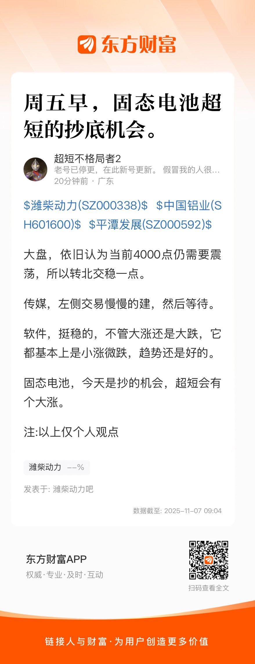 温馨提示: 1.根据《证券法》规定,禁止编造、传播虚假信息或者误导性信息,扰乱证券市场;2.用户在本社区发表的所有资料、言论等仅代表个人观点,与本网站立场无关,不对您构成任何投资建议。用户应基于自己的独立判断,自行决定证券投资并承担相应风险。《东方财富社区管理规定》