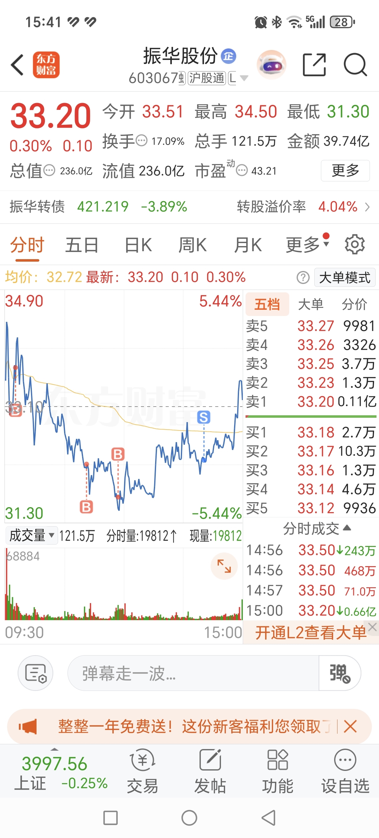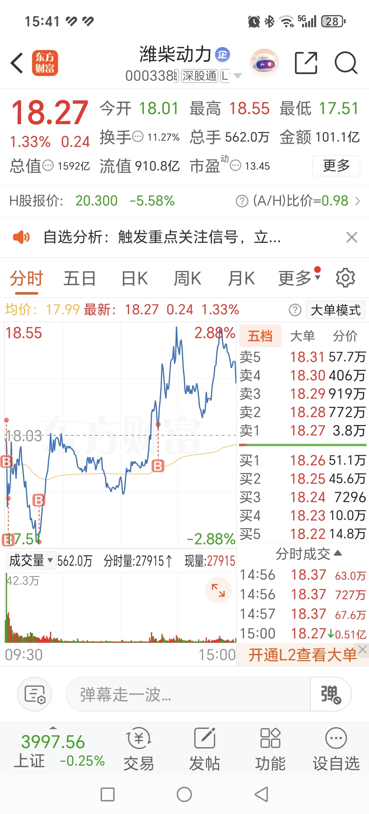 今天按计划分别低吸潍柴动力和振华股份,小买了几笔三角防务,我们也要学量化,平铺并聚焦该板块。