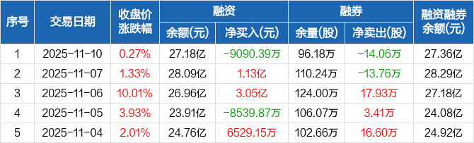 潍柴动力:融资净偿还9090.39万元,融资余额27.18亿元(11-10)