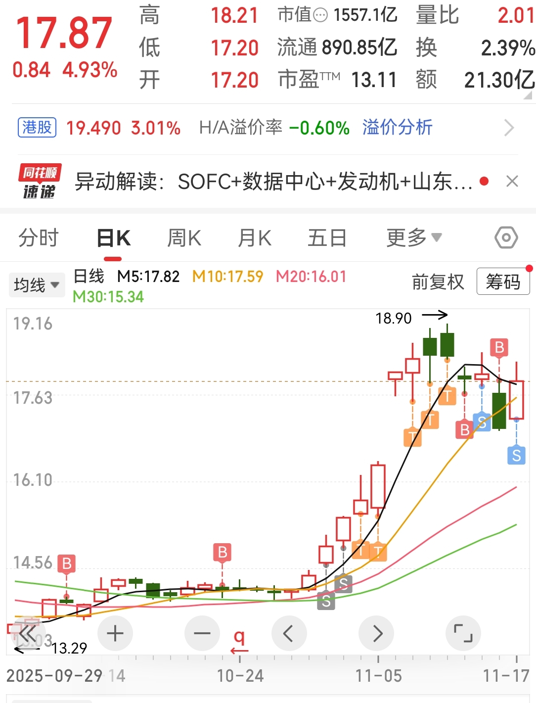 周五补的今天T了出去,还是那句话,高抛低吸,潍柴值得长期拥有!