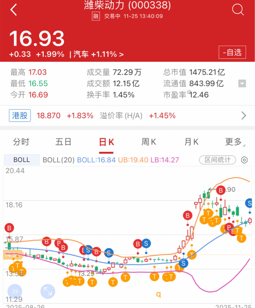 潍柴动躲牛市躲行情2025年11.26日,第526天,老股友敬告!目前3年套牢盘20左右还没解放!20还在山顶!高出低进!及时T。再次回到13来抄底!潍柴鸟性!潍柴老友衷心敬告#炒股日记# $潍柴动力(SZ000338)$