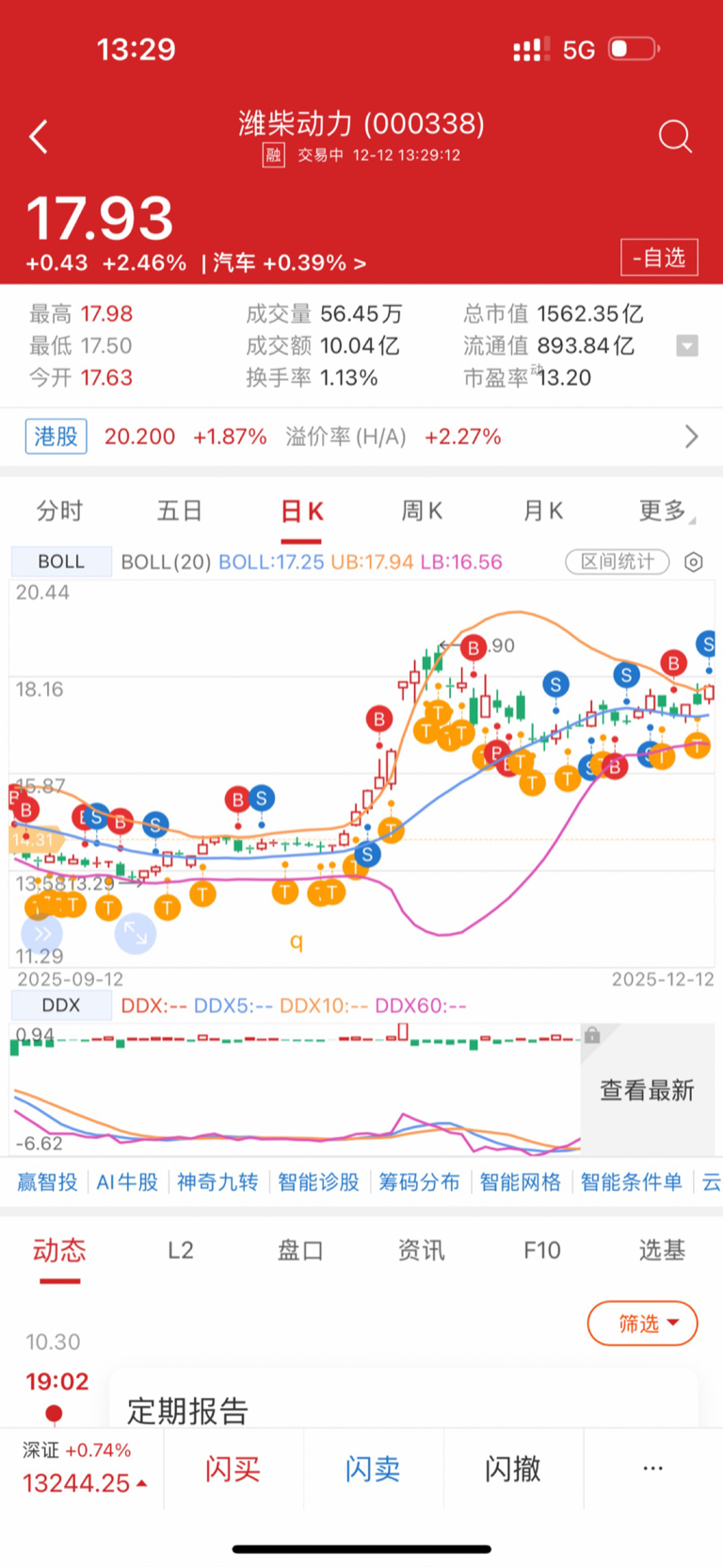 所有拉高都是套!12.22号的解禁势必会砸出一条新的大阴线!明智之举清仓低买高卖!及时做T。不要明知山有虎偏向虎山行!!$潍柴动力(SZ000338)$