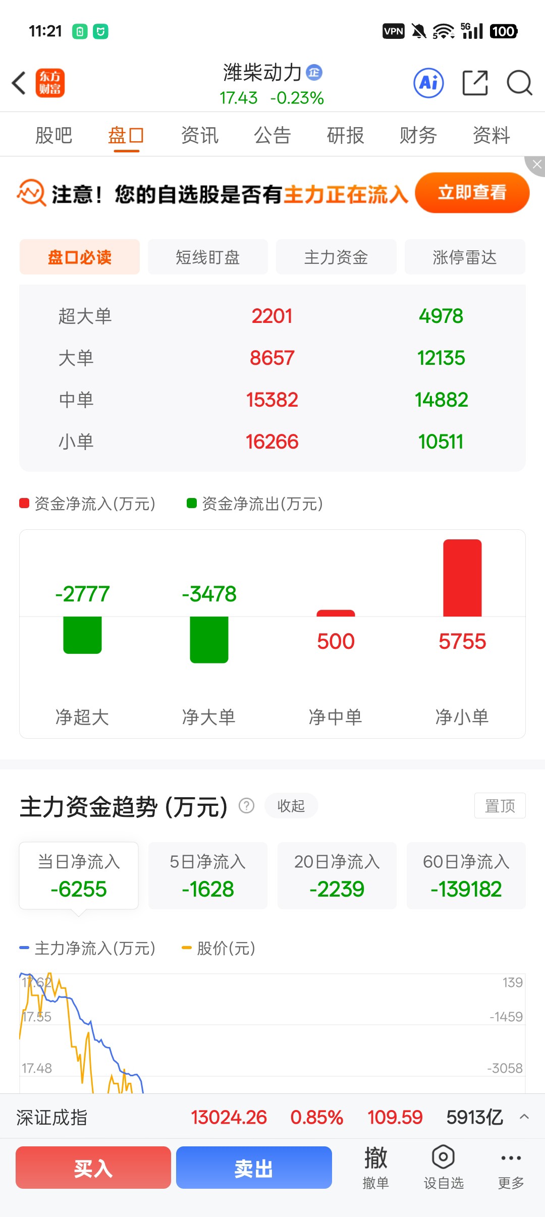 $潍柴动力(SZ000338)$ 一群不懂装懂的在这在这里发帖,看看成交的是大单还是小单,卖的都是几手,买的都是成千的在吸筹。长了脑袋的去判断将来是涨还是跌。可能讲的话不好听。