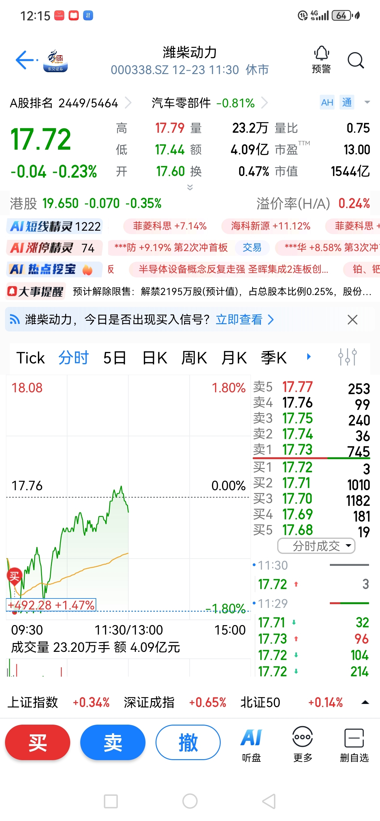 $潍柴动力(SZ000338)$ 这次争取赚二瓶飞天