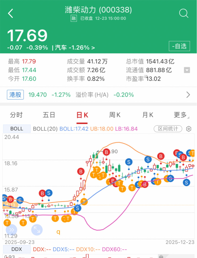 潍柴动躲牛市躲行情2025年12.24日,第554天,老股友敬告!目前3年套牢盘