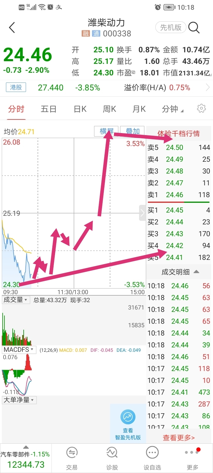 $潍柴动力(SZ000338)$ 走势图画出,参考加仓。。