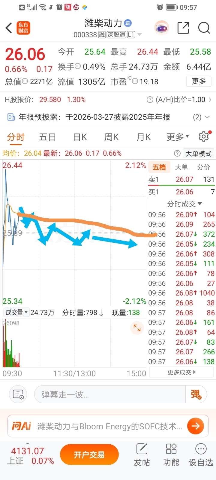 $潍柴动力(SZ000338)$ 一哥盘中走势图已画出,作为参考。