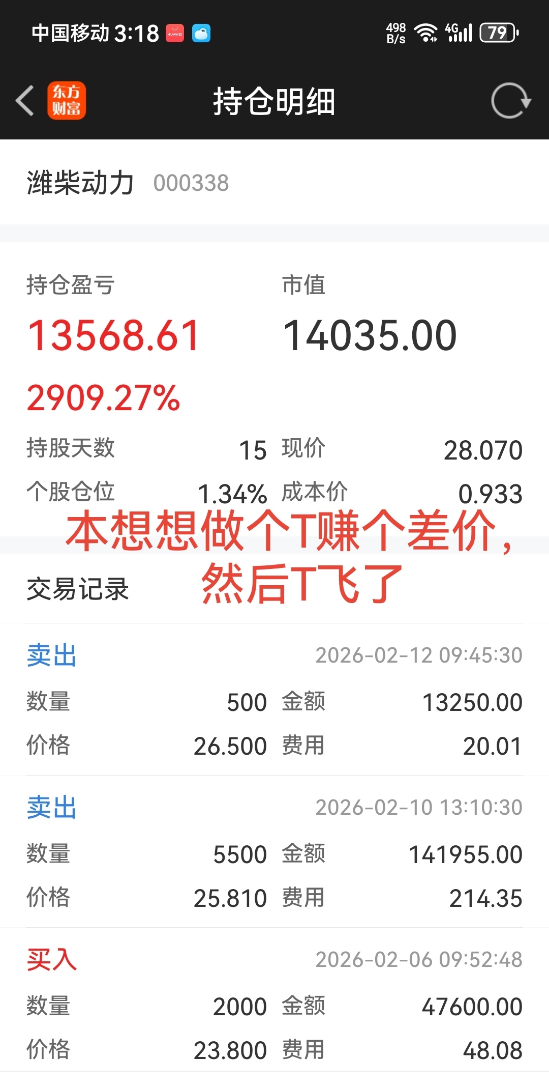$潍柴动力(SZ000338)$ 今年最失败的一次T.