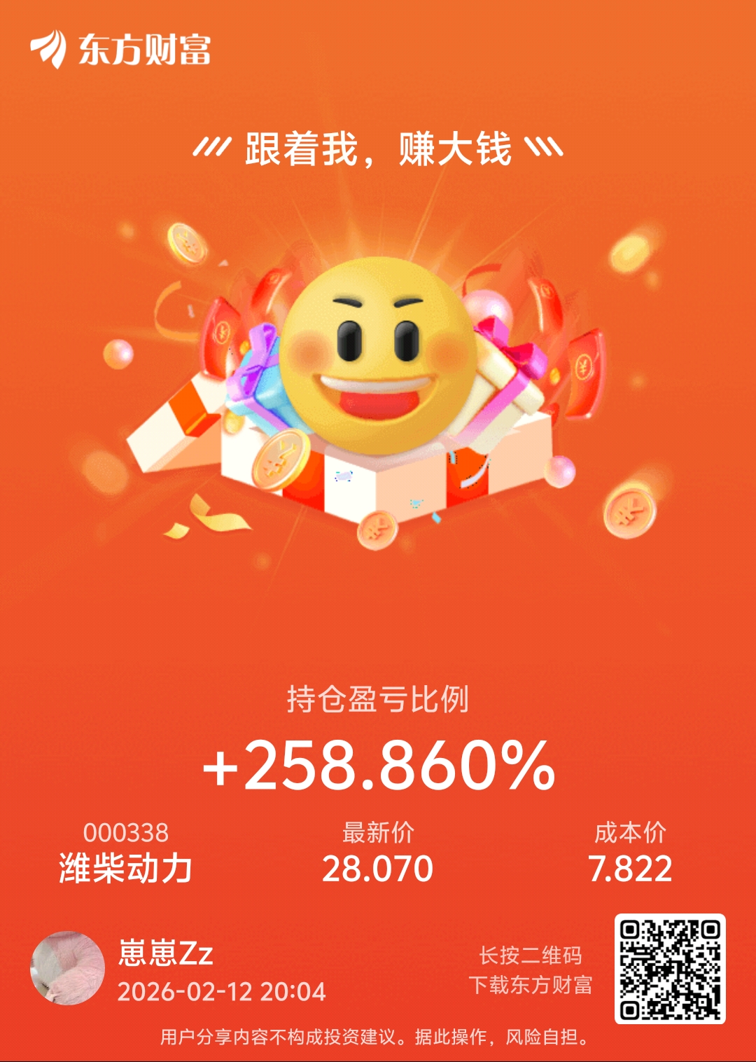 温馨提示: 1.根据《证券法》规定,禁止编造、传播虚假信息或者误导性信息,扰乱证券市场;2.用户在本社区发表的所有资料、言论等仅代表个人观点,与本网站立场无关,不对您构成任何投资建议。用户应基于自己的独立判断,自行决定证券投资并承担相应风险。《东方财富社区管理规定》