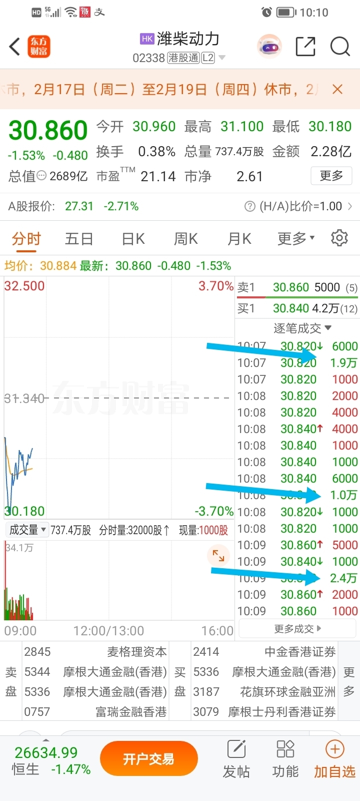 $潍柴动力(SZ000338)$ h股 大笔卖出,主力在悄无声息中出货