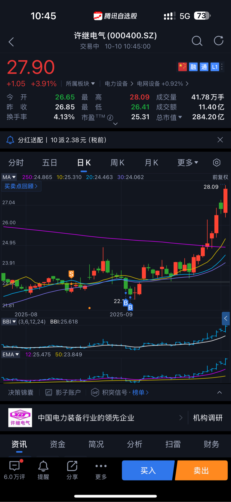 $许继电气(SZ000400)$ 真正的看多是两个账户同时买入
