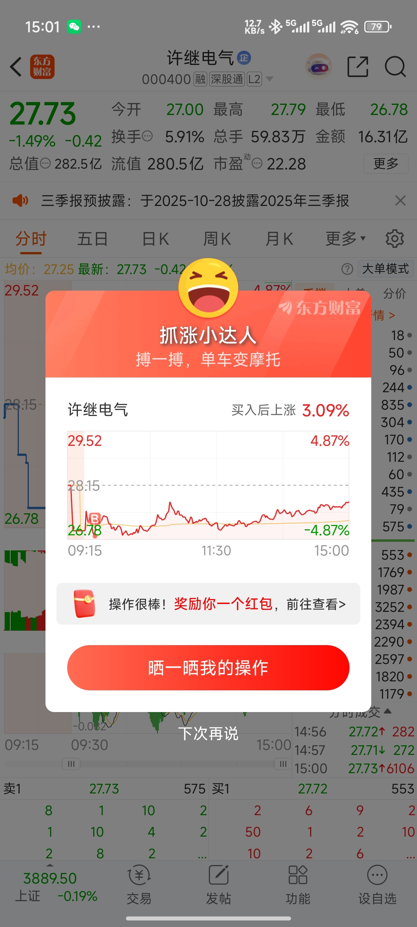$许继电气(SZ000400)$ 到尾盘全是买单,确定是洗盘今天加了两万,成功抄底