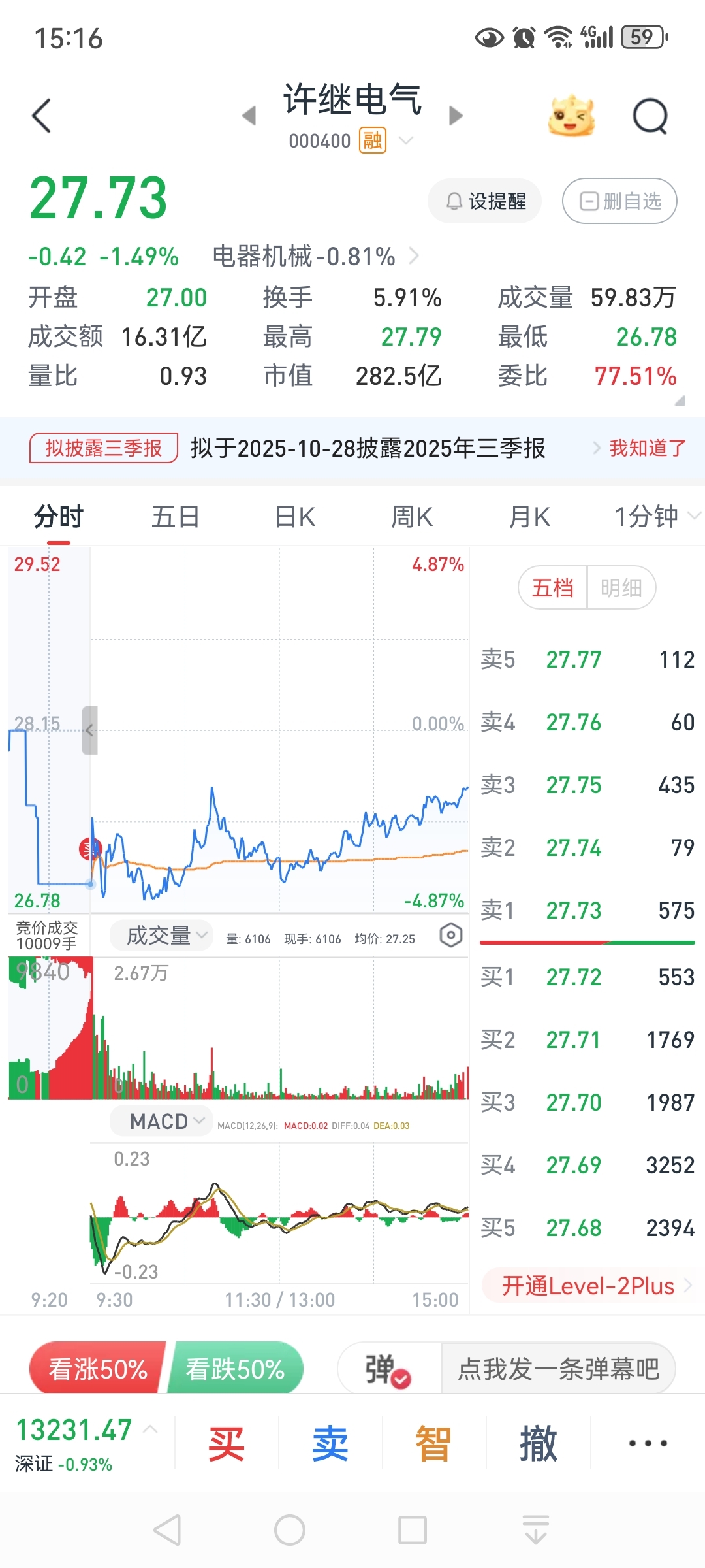 $许继电气(SZ000400)$ 上周五高抛T出,早上成功回补仓位!