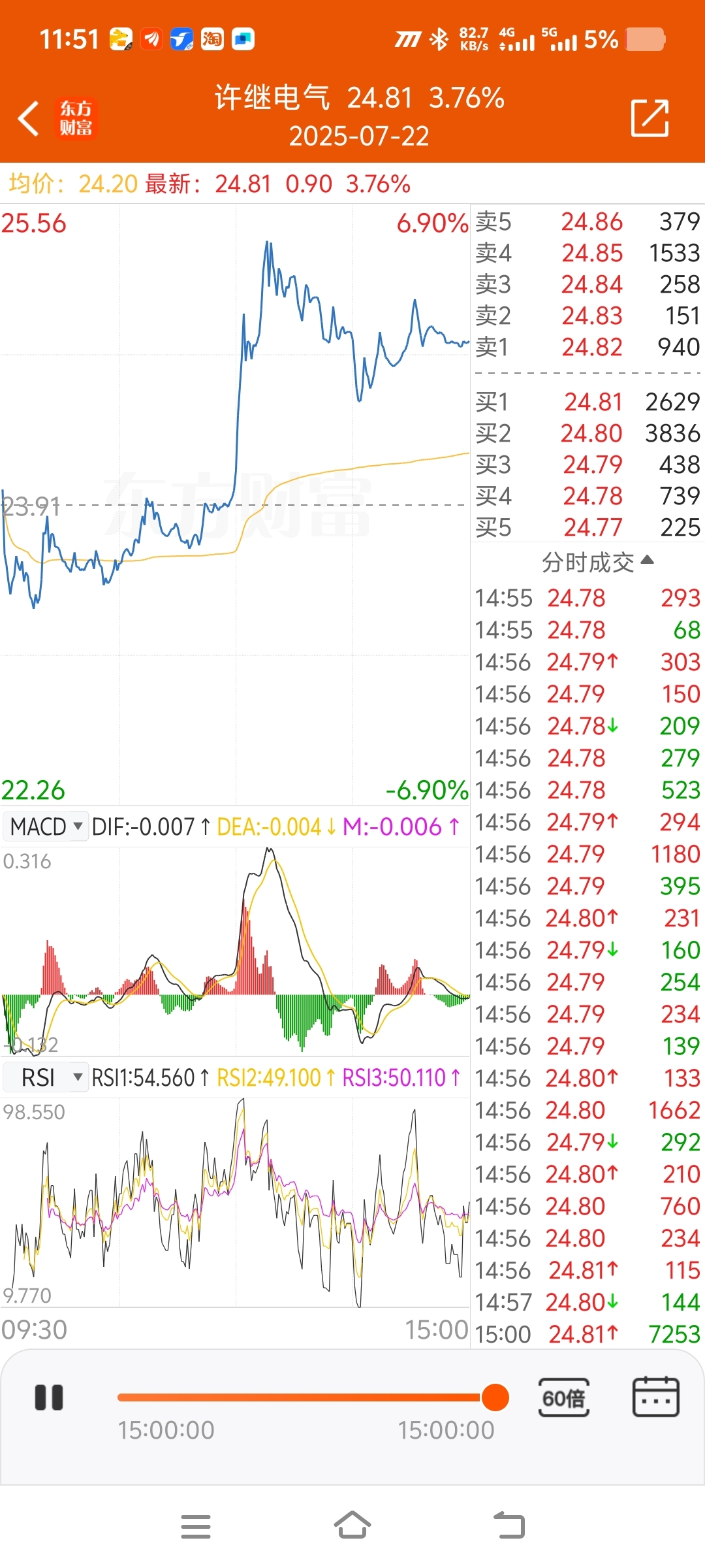 $许继电气(SZ000400)$ 和7月22一样,加仓干