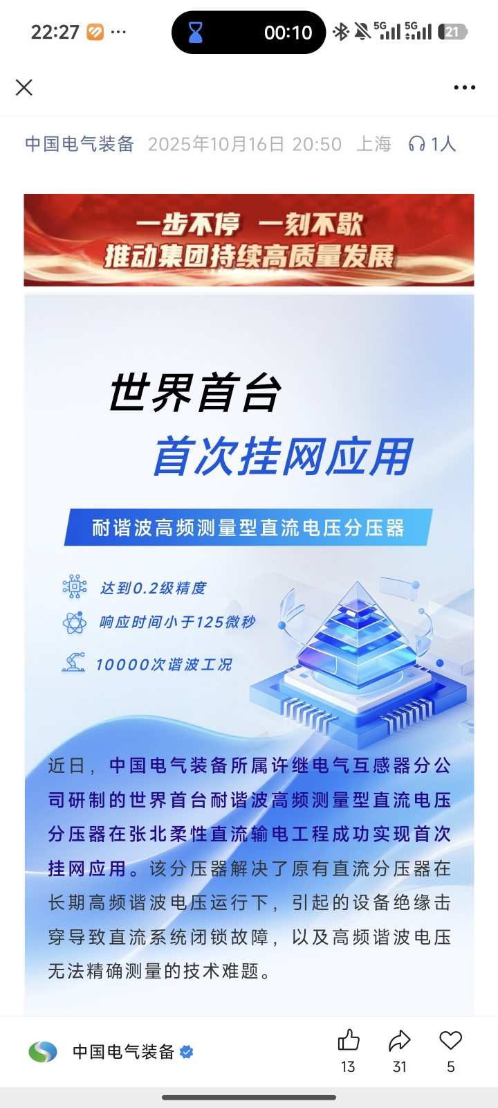 $许继电气(SZ000400)$ 深夜官号传来发利好