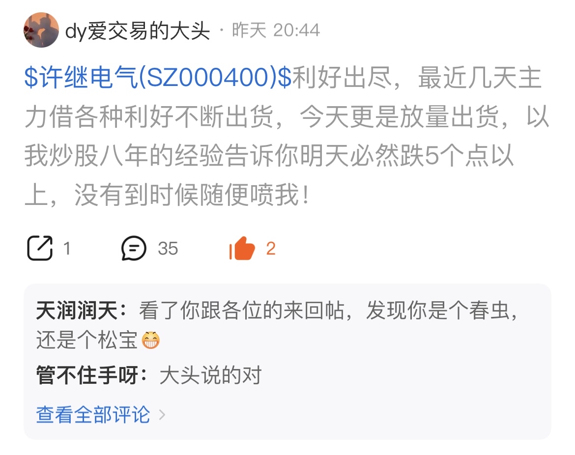 温馨提示: 1.根据《证券法》规定,禁止编造、传播虚假信息或者误导性信息,扰乱证券市场;2.用户在本社区发表的所有资料、言论等仅代表个人观点,与本网站立场无关,不对您构成任何投资建议。用户应基于自己的独立判断,自行决定证券投资并承担相应风险。《东方财富社区管理规定》