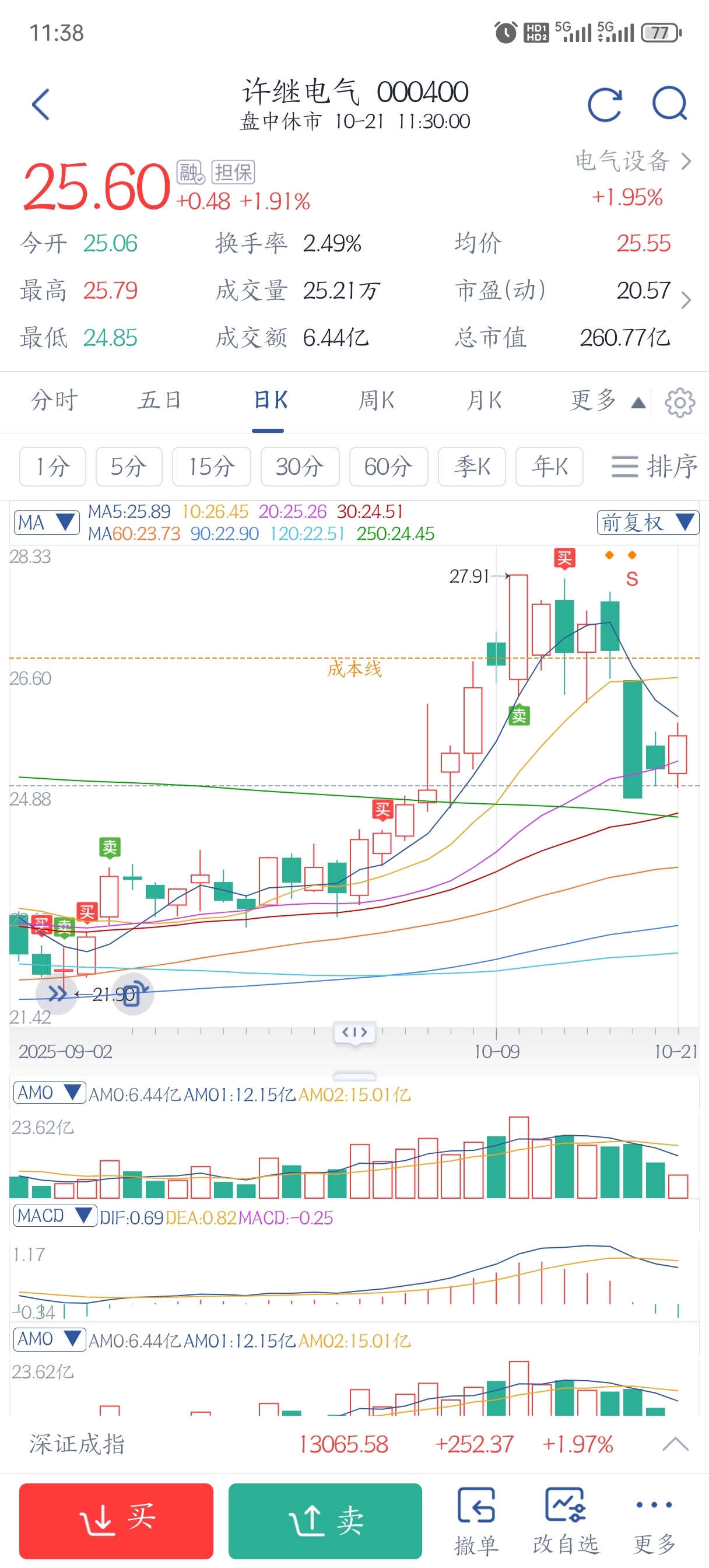$许继电气(SZ000400)$ $佳电股份(SZ000922)$ $振华科技(SZ000733)$ 一言难尽,肉吃满了收益,再吐出一部分
