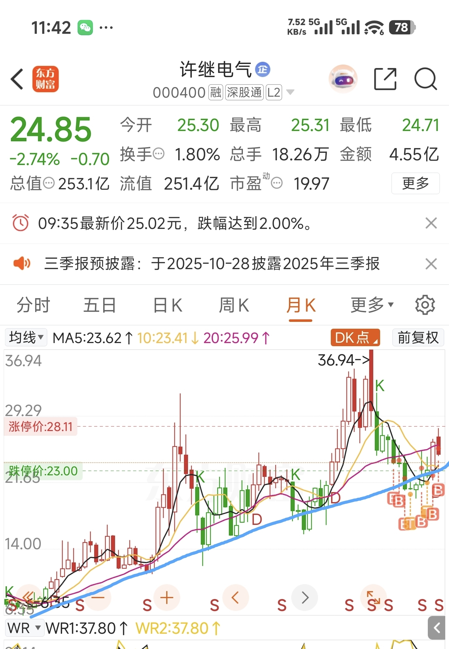 $许继电气(SZ000400)$ 按照这个趋势来看,现在是不是在筑底呢?