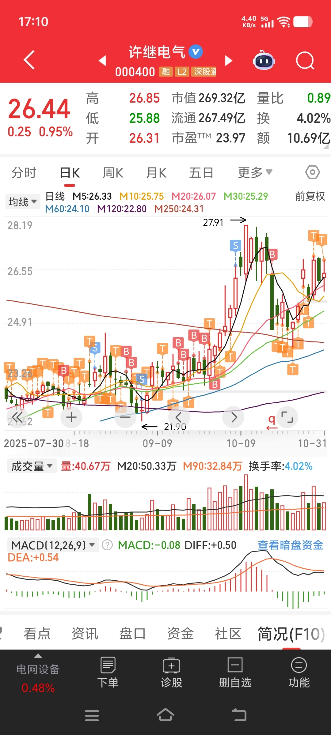 许继电气T了一下日常操作