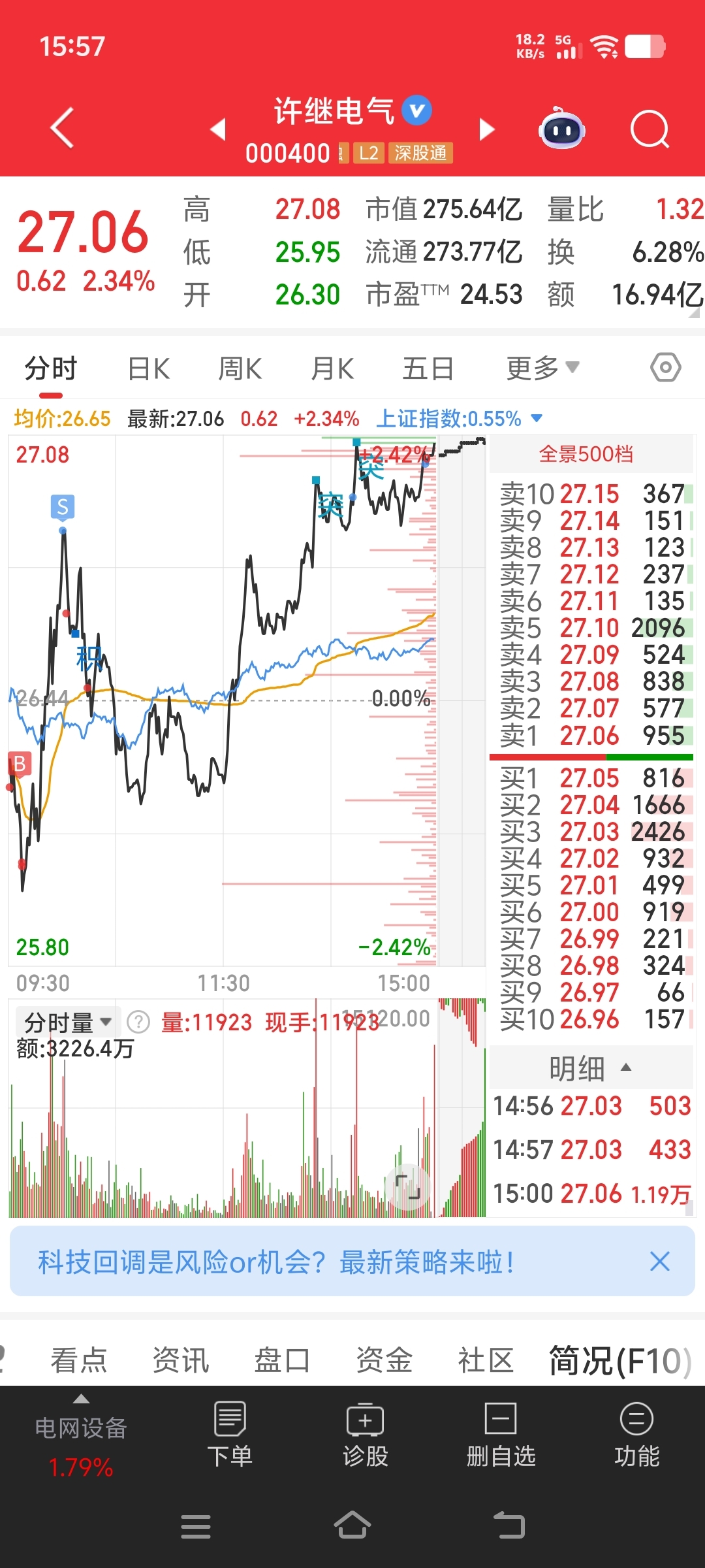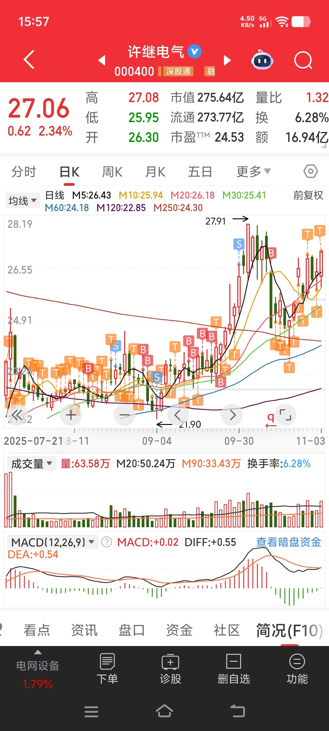 许继电气盘中又T了T日常刷单