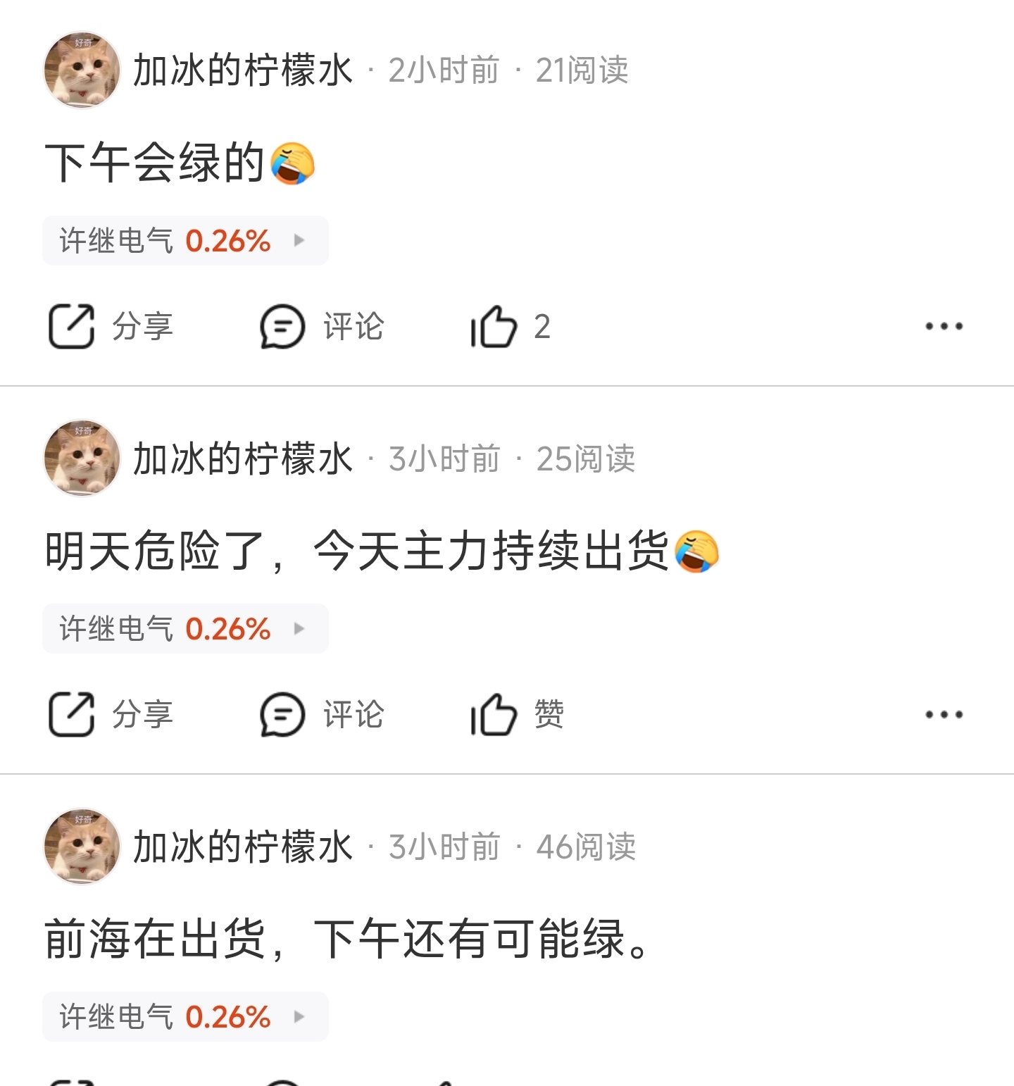 $许继电气(SZ000400)$ 我今天已经在股吧多次提醒,今天下午会绿的,和大盘下跌关系不大,是因为主力达到28块之后,就开始疯狂出货了,今天前海又出爽了,明天也很危险。