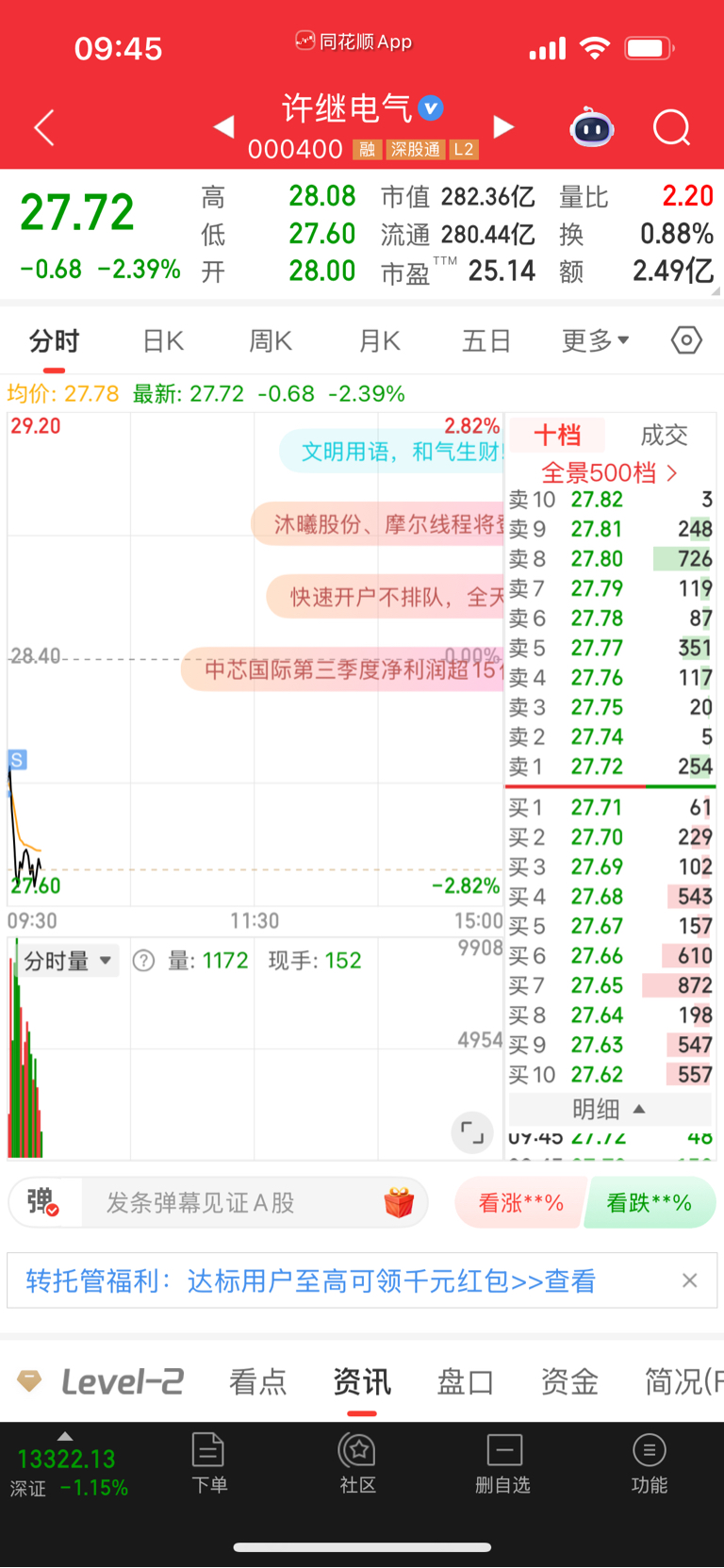 $许继电气(SZ000400)$ 低预期,开盘清,继续观察