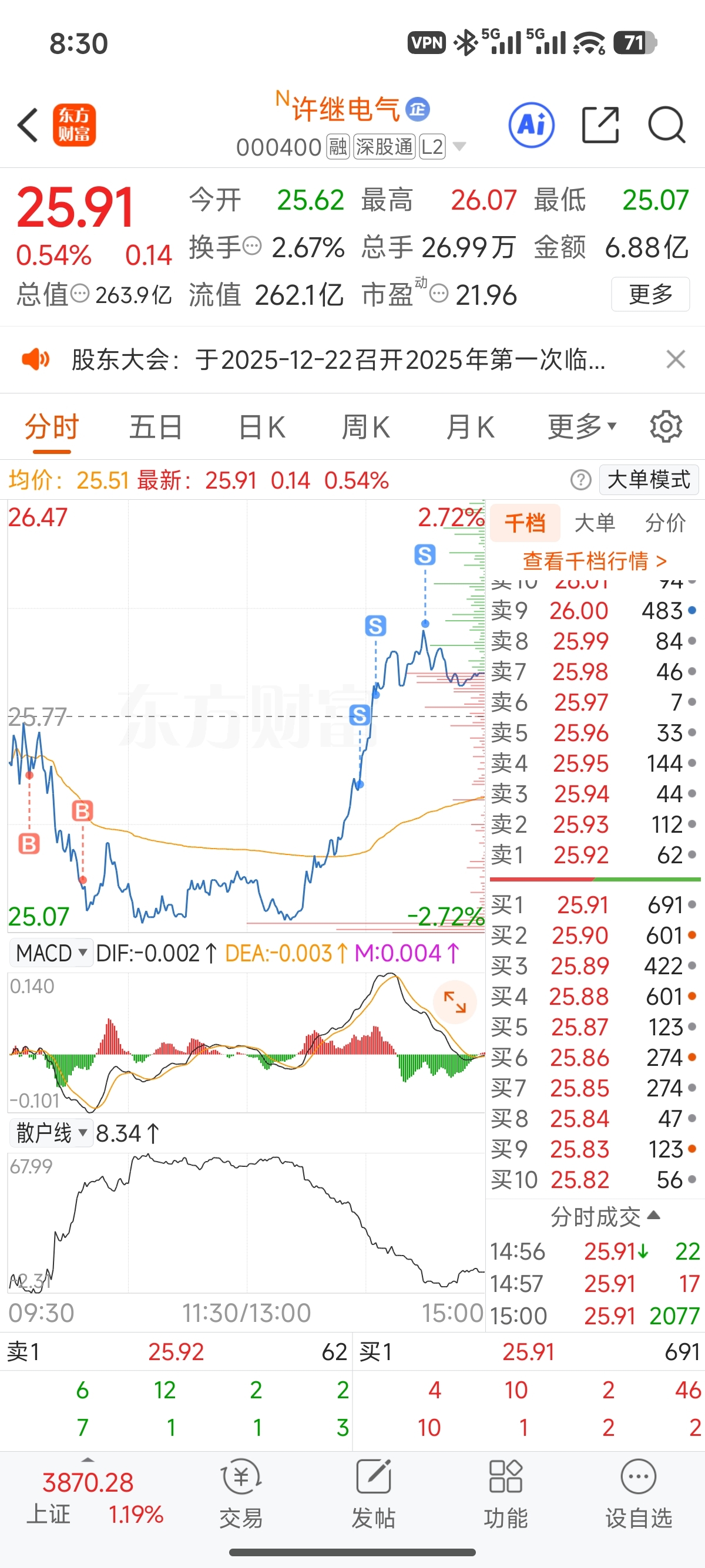 $许继电气(SZ000400)$ 做个T试试盘感…