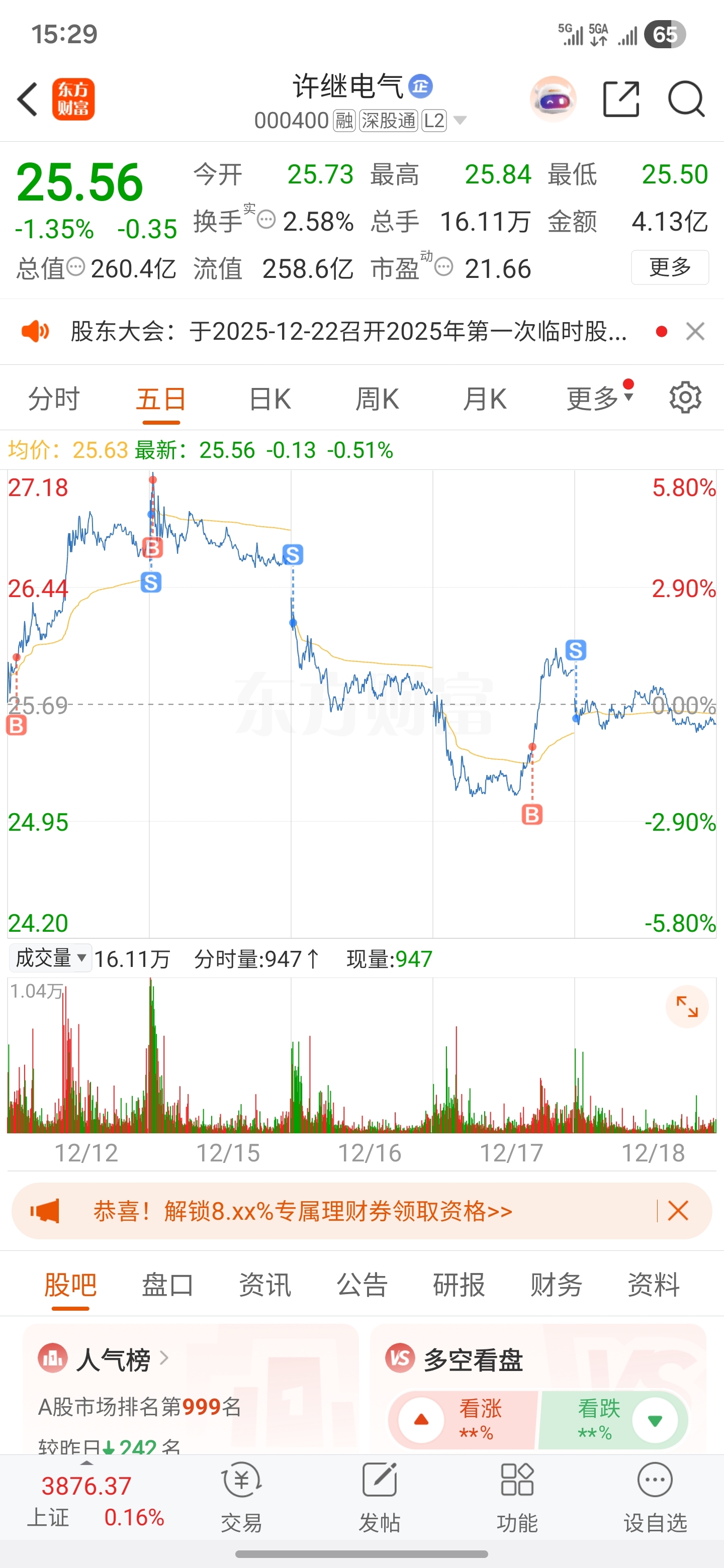 $许继电气(SZ000400)$ 好玩,不赚不亏