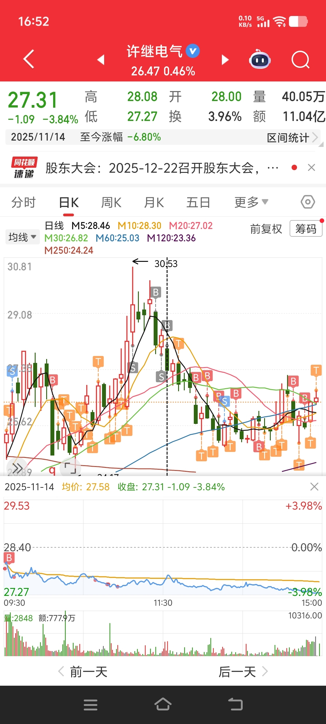 许继电气还玩着她呢本来都清仓了11月14号那天又买回去了折腾了一个多月目前又解套