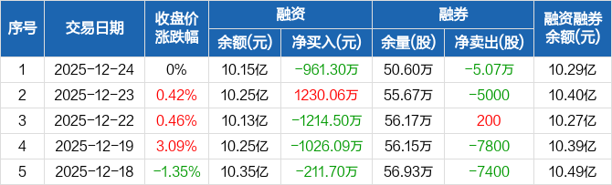 许继电气:融资净偿还961.3万元,融资余额10.15亿元(12-24)
