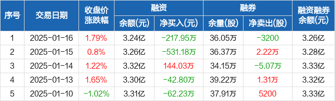 冀东水泥:融资净偿还217.95万元,融资余额3.24亿元(01-16)