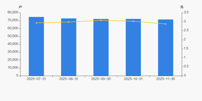 2025年7月31日至今,公司股东户数有所下降,区间跌幅为4.34%。2025年7月31日至2025年11月30日区间股价下降2.05%。