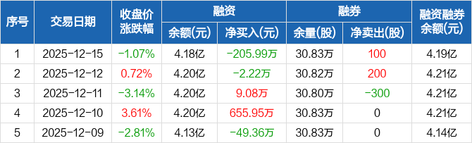 金融街:融资净偿还205.99万元,融资余额4.18亿元(12-15)