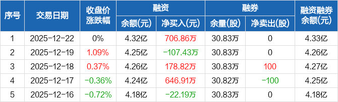 金融街:融资净买入706.86万元,融资余额4.32亿元(12-22)