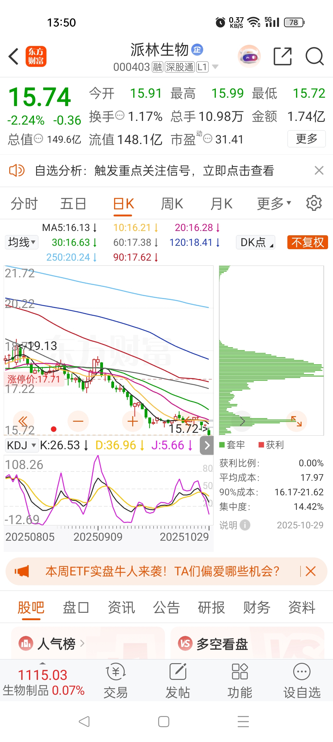 $派林生物(SZ000403)$ 全是套牢盘,继续杀!