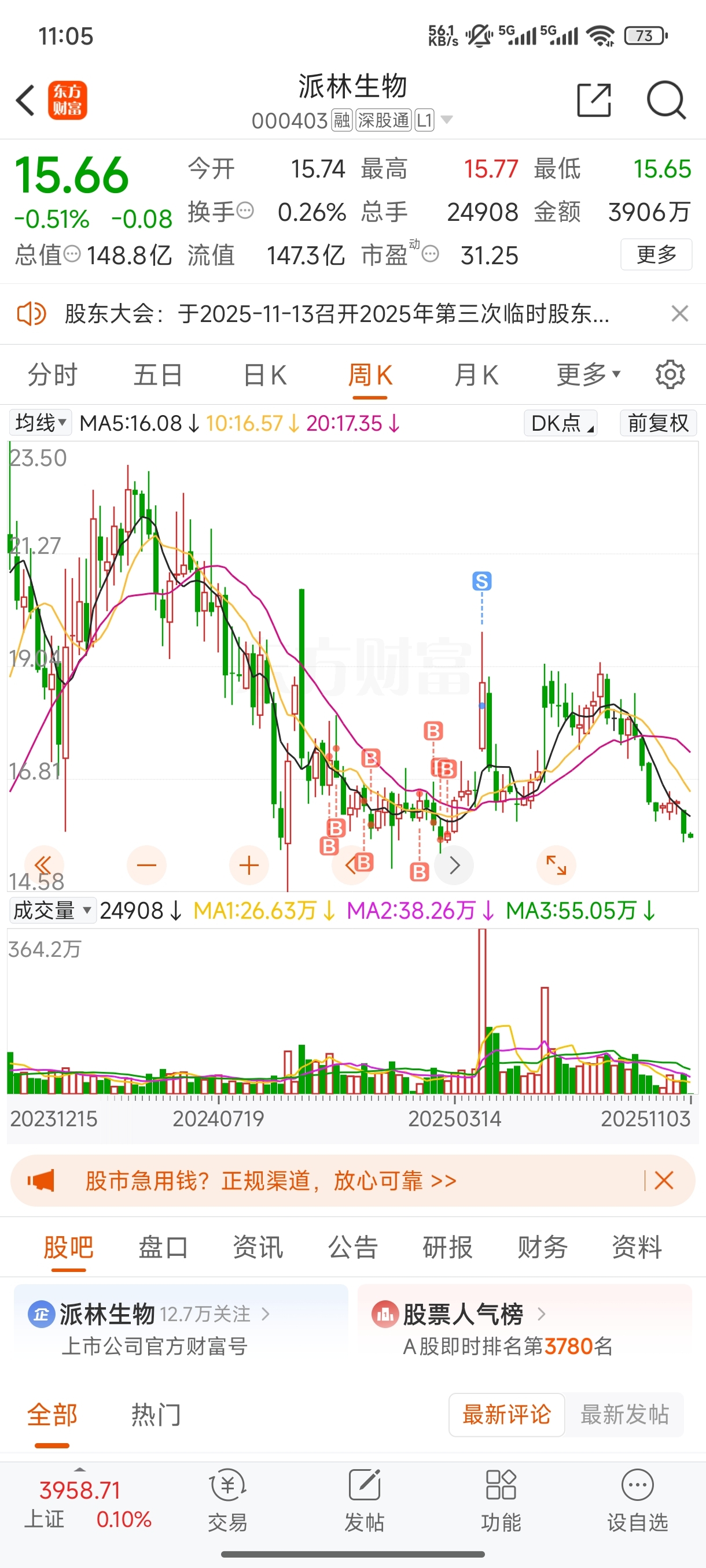 $派林生物(SZ000403)$ 还好我跑得早,等15以下我再来