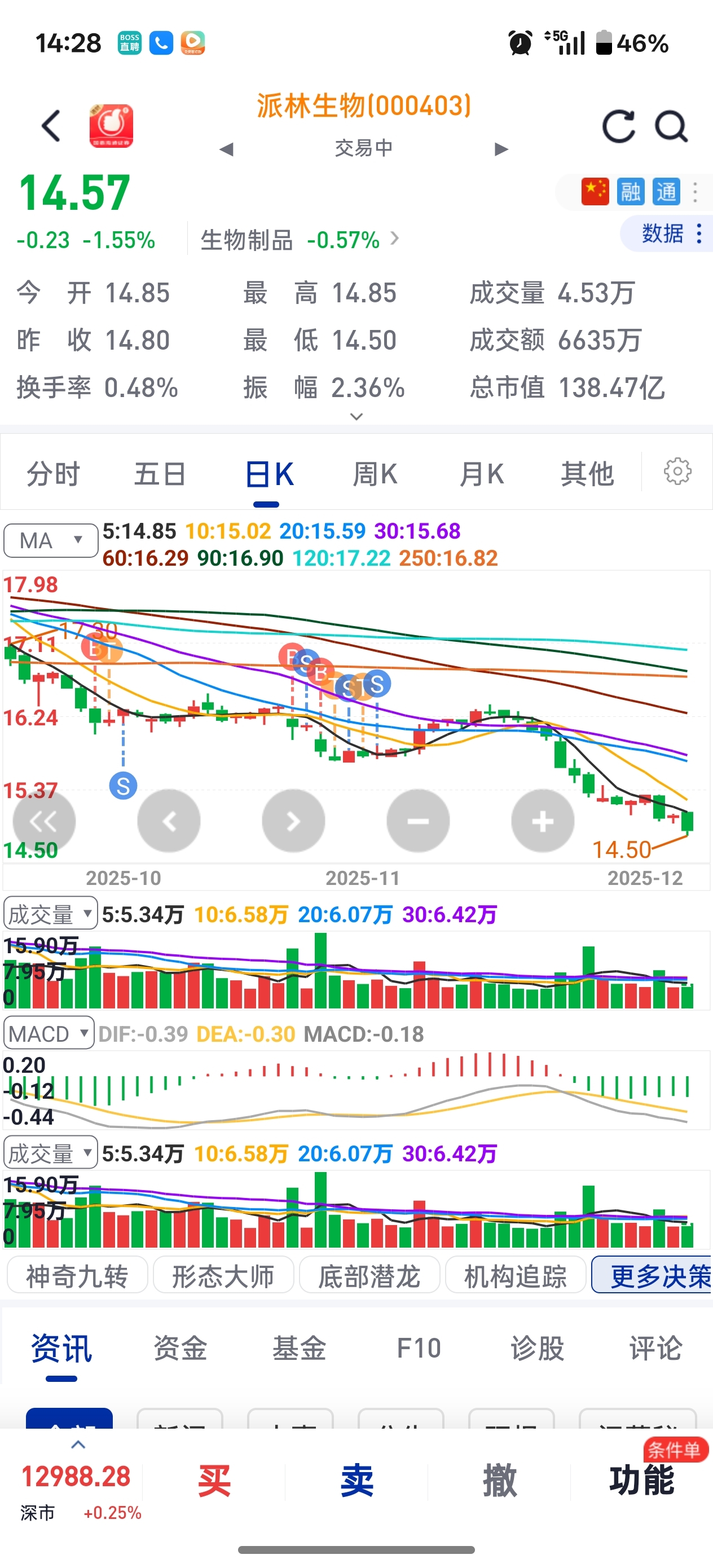 $派林生物(SZ000403)$ 感谢主力一直不拉,回本就跑了!今天又来了