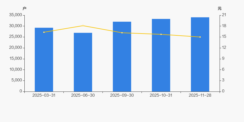 自2025年6月30日以来,公司股东户数连续3期上涨,截至目前增幅为26.47%。2025年6月30日至2025年11月28日区间股价下降17.21%。