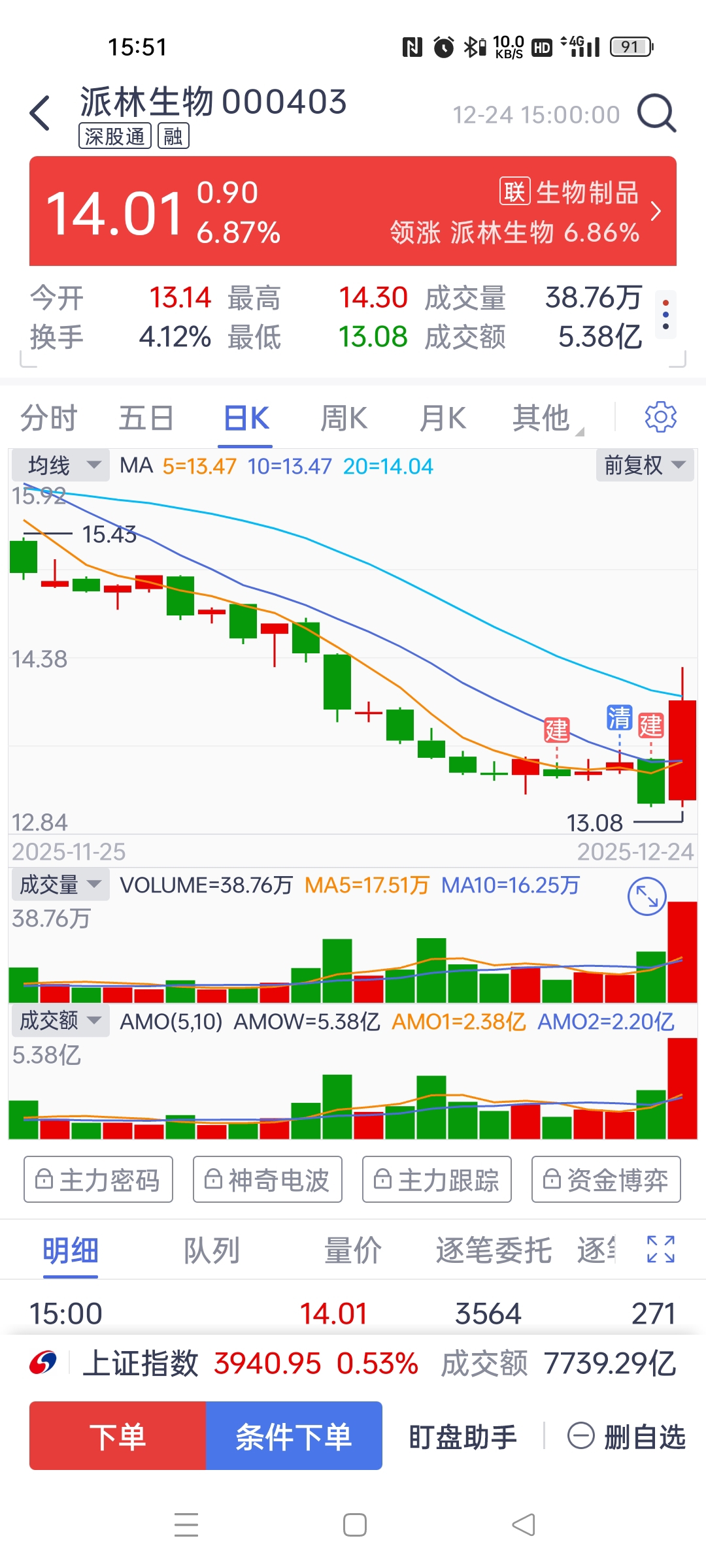 $派林生物(SZ000403)$ 散户的通病,给块糖就走了,后面的排骨还没吃上就下饭桌了。不纠结,明天再择机买回来